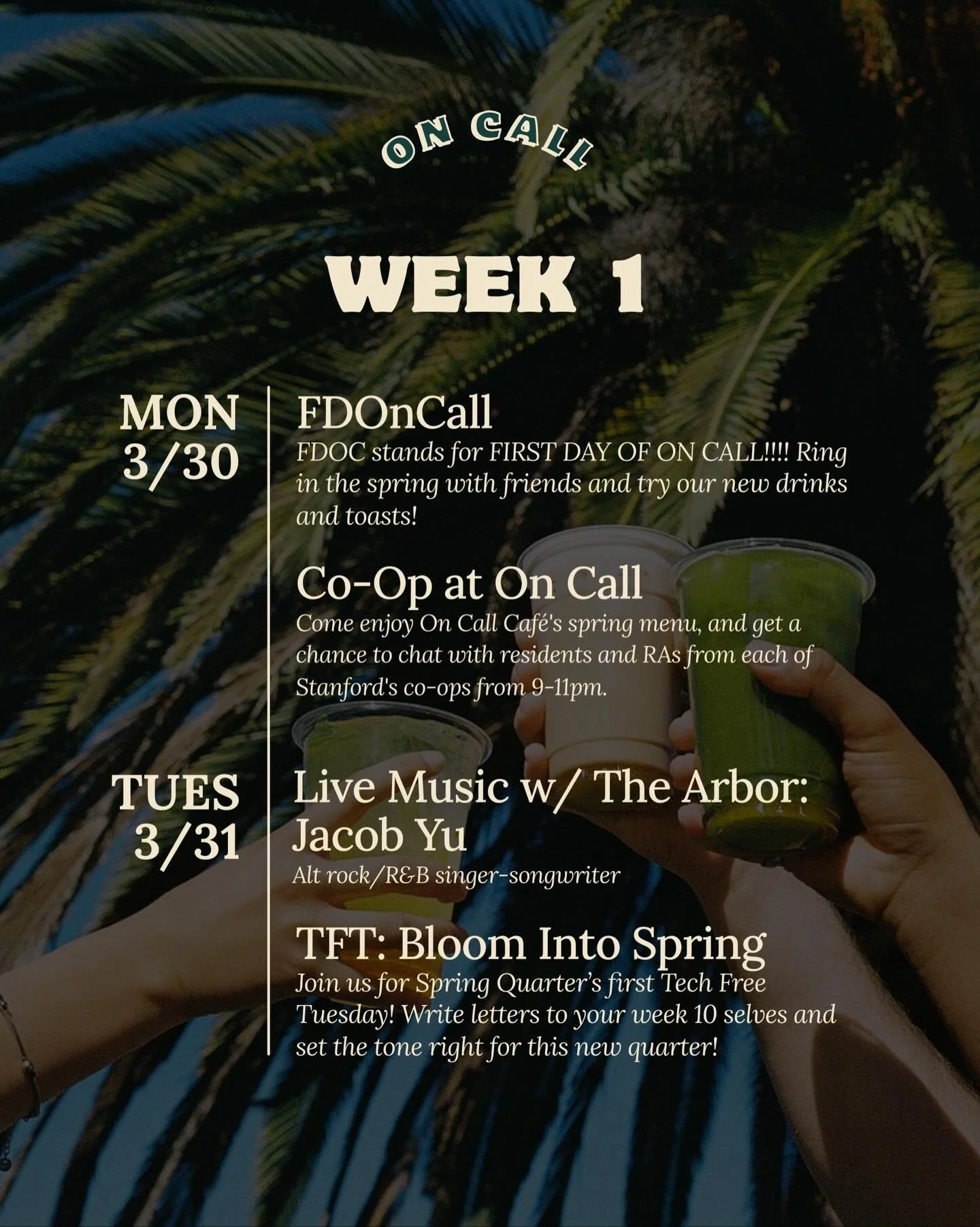 On Call Café is a student-run, late-night café. We’re on a mission to build community, increase belonging, and serve the best vibes on campus.