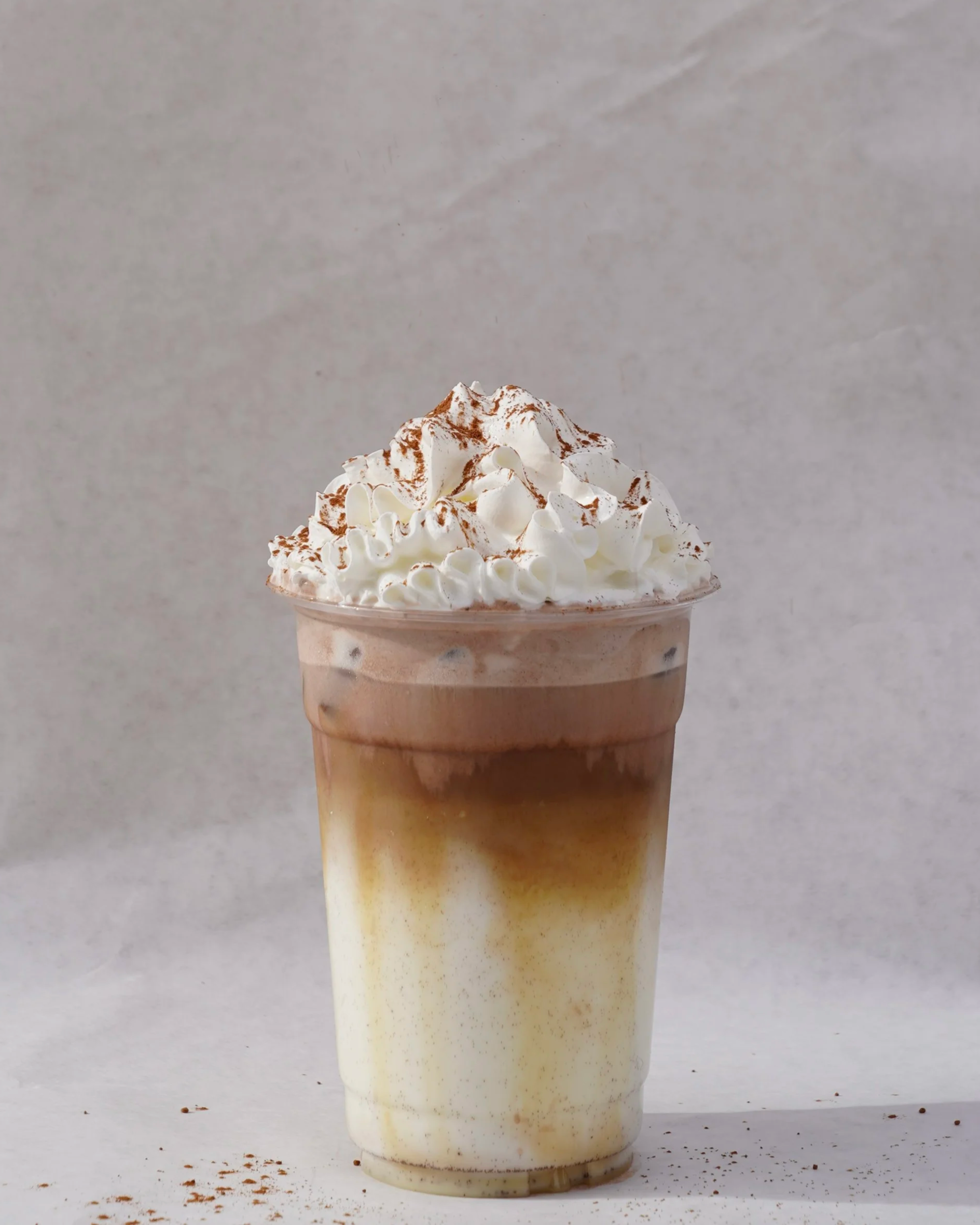 Did you tira-miss-us? We tira-missed-u too. A caffinated iced tiramisu latte, with brown sugar cinnamon syrup and cold foam on top.