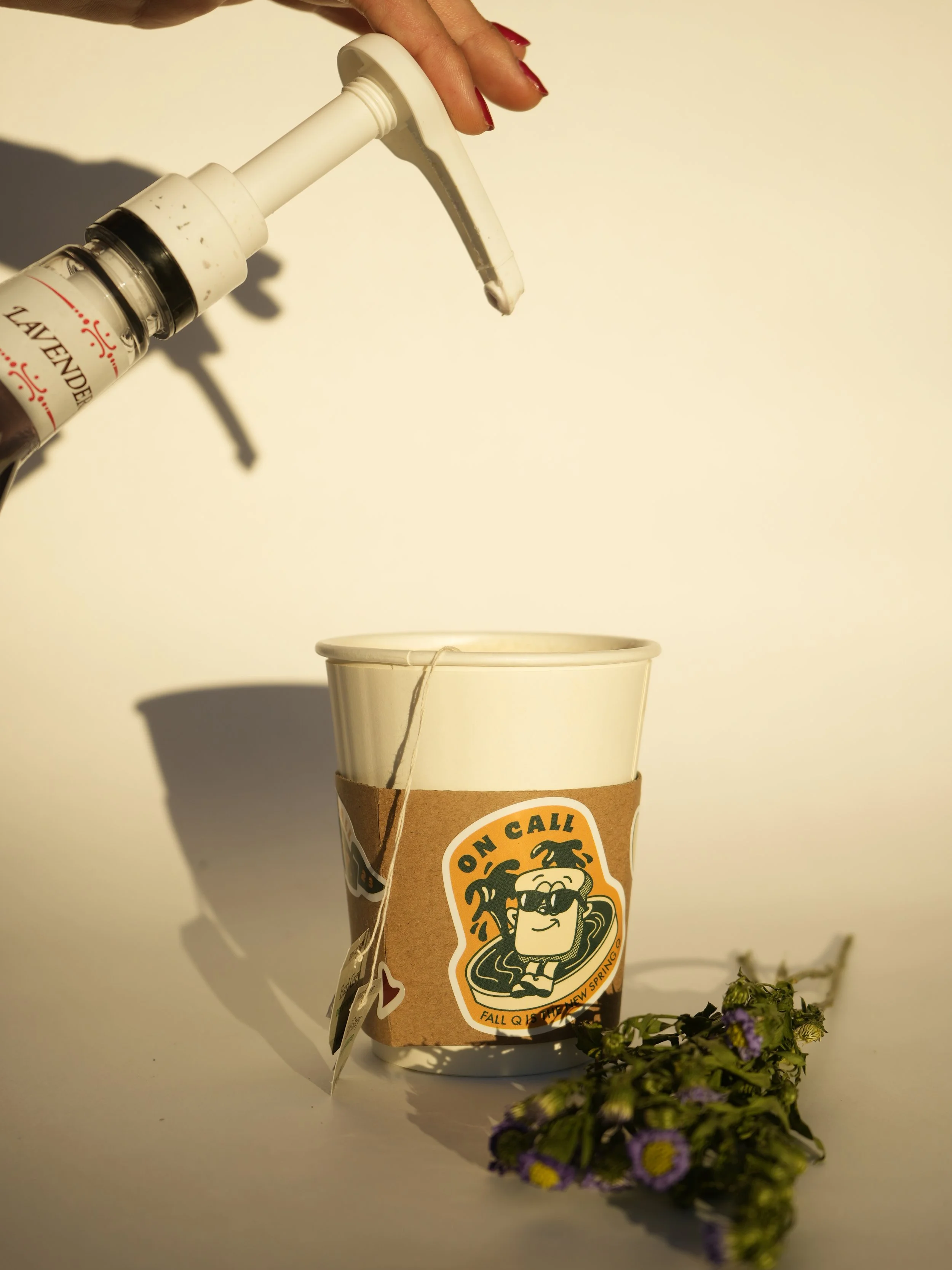 Karl, the fog is visiting Palo Alto. Our beloved lavender fog is back, steeped with hot decaf Earl Grey tea, lavender syrup, and milk.